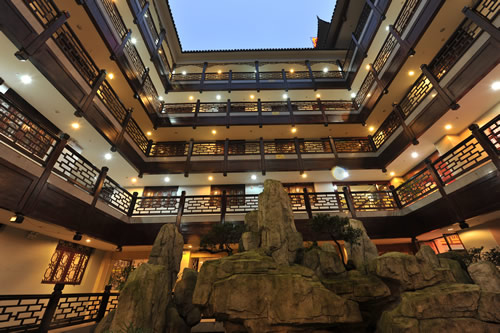 鳳凰鳳廷國際大酒店建筑風(fēng)格突顯湘西民族民居的建筑風(fēng)格。以苗家和土家的吊腳樓和四合院為基本元素,用現(xiàn)代居家觀念進行創(chuàng)新解構(gòu)和重組,營造出一種讓外來人能感受到的原汁原味的湘西氣息,讓湘西本土人于陌生中感到親切、于熟悉中感到新鮮的韻味。