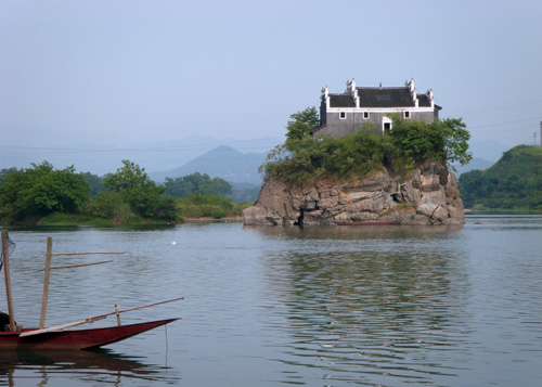 香零山為天然石磯結(jié)構(gòu),地處中流,隨瀟水水勢(shì)而展現(xiàn)不同的風(fēng)光,勢(shì)浩蕩則如汪洋中之一小舟,水勢(shì)弱小則島亭昭然挺立。若雨后日出,煙鎖山腳,霧雨朦朧,往來(lái)舟楫,若隱若現(xiàn),給人一種煙波浩渺的意境,因而有“香零煙雨”之稱(chēng),為永州八景之一。