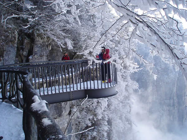 據(jù)施工人員介紹,此條棧道也是他們所修棧道中施工最難,最險(xiǎn)峻的一條。如果您還覺(jué)得不夠刺激的話,在棧道的完結(jié)處的兩個(gè)懸崖之間有一條長(zhǎng)160米的懸索吊橋,同時(shí),在海拔最高點(diǎn)還有一個(gè)挑戰(zhàn)心里極限的玻璃站臺(tái),在這里,如果你能挺直腰板伸開(kāi)雙臂,那么,您就是真正的勇士了。