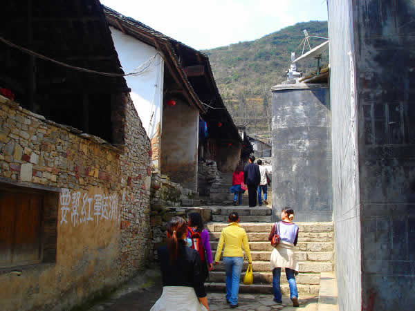 流水悠悠,人事蒼桑。到了近代,由于陸上交通的迅速崛起,水上交通漸漸衰落,小鎮(zhèn)慢慢地被人遺忘在峽谷之中了。失去了往日繁華的小鎮(zhèn),并沒有失去多少古色古香的本來面目,使我們今天能通過這殘缺的街道、建筑、店鋪,去感受她逝去的風采。古老的風火墻、底矮的吊腳樓,向游人展示著土家人的聰明才智,一條條青石板、一聲聲咚咚喹,在訴說著古寨子過去的輝煌。