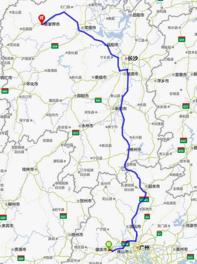 肇慶去張家界自駕車(chē)自助游線路圖全程高速):