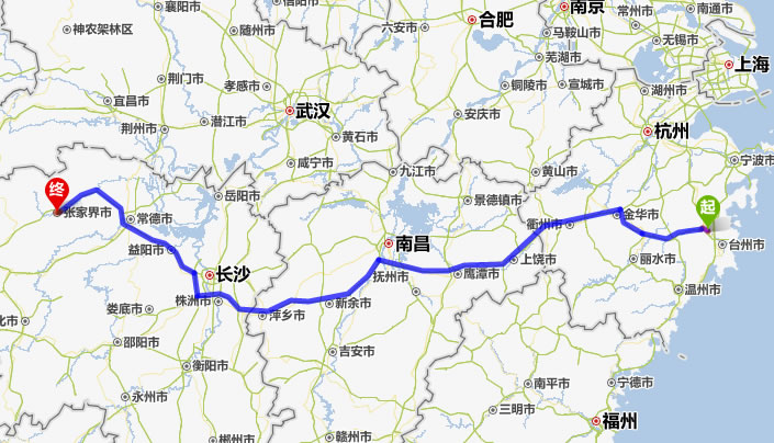 現(xiàn)在位置:張家界旅行社->交通指南->自駕車路線 -> 臨海到張家界旅游自駕車線路,臨海去張家界自己開車要多長(zhǎng)時(shí)間,有多少公里