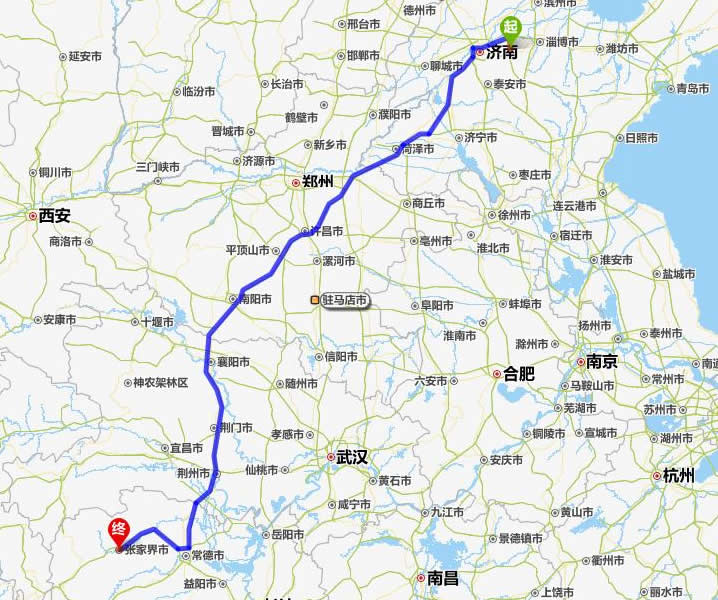 章丘去張家界自駕車自助游線路圖全程高速):