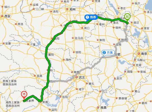 睢寧縣去張家界自駕車自助游線路圖全程高速):