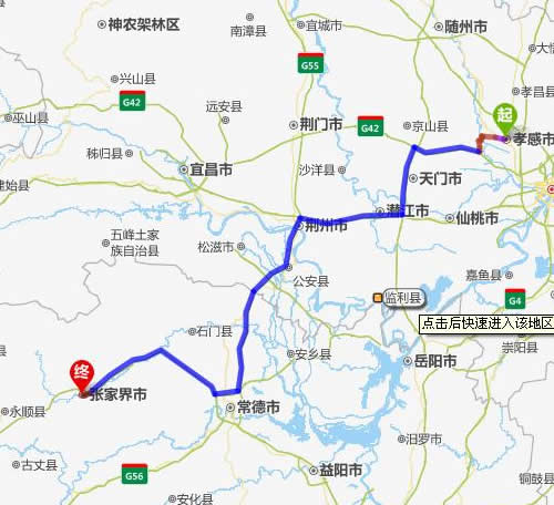 孝感去張家界自駕車自助游線路圖全程高速):